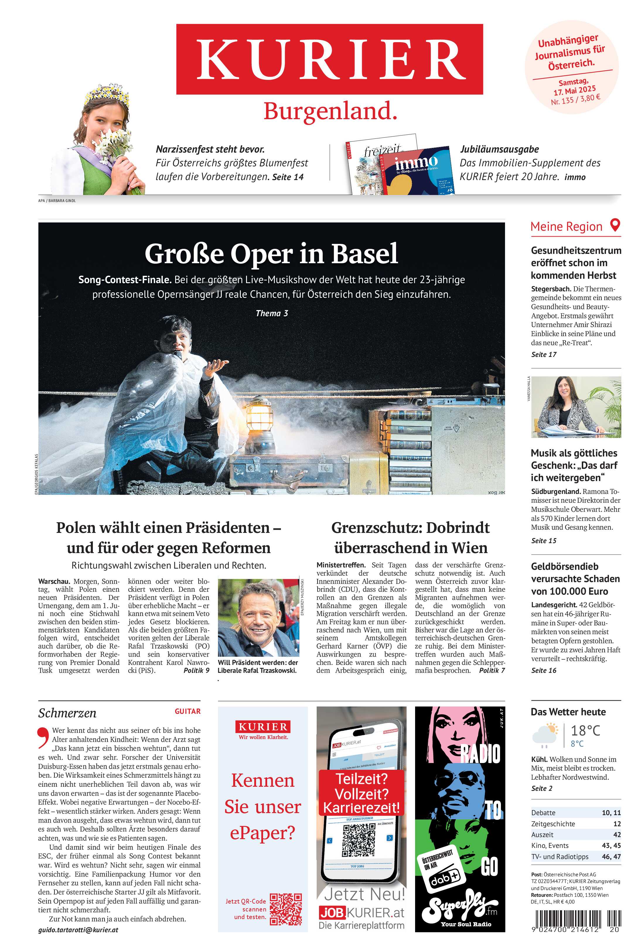 die Ausgabe mit Wien, in Niederösterreich mit Niederösterreich und im Burgenland